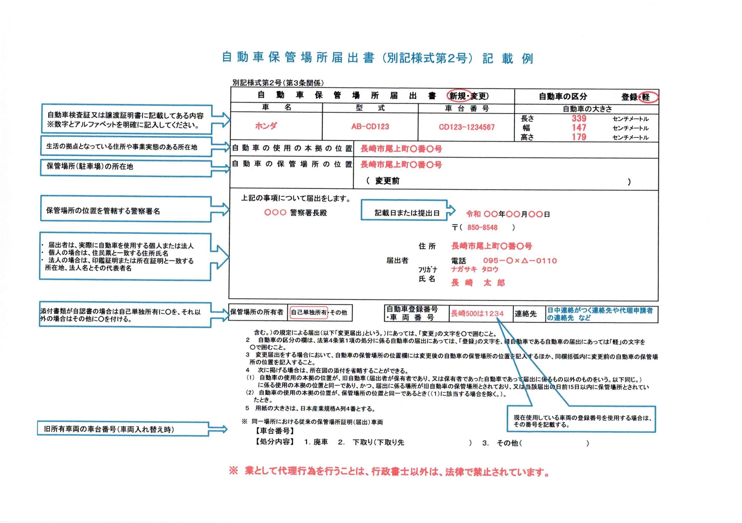 ⇒ 【次の基礎知識】長崎の自動車保管場所証明申請書の記入例